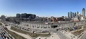 When the REM was initially proposed in April 2016, two "potential station locations" south of Gare Centrale were listed as Bridge-Wellington and Du Havre.[3] In November 2016, locations of downtown stations were confirmed, with Bassin Peel station to be located under the Peel Basin of the Lachine Canal, near the site of the former Goose Village neighbourhood.[4] The station was planned to be built underground, with one exit leading to Griffintown and the other to Pointe-Saint-Charles.[5] The local community requested that the station name reflect the Irish heritage of the area.[6]