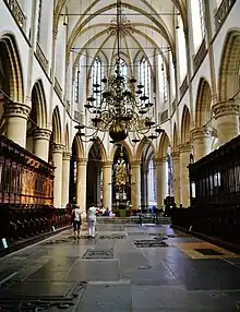 On June 29, 1457, a fire, which started in Kleine Spruistraat, spread quickly to other streets causing massive destruction, and the church was severely damaged.[4] Everaert Spoorwater, an architect from the southern Netherlands, led the reconstruction in the Brabantine Gothic style. The ceiling mostly consists of rib vaults, except for the Mariakoor which contains a lierne vault.