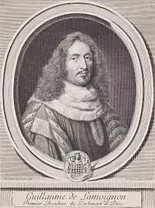 Guillaume de Lamoignon (1617–1677) was a French jurist. He is known for work which he did towards preparing the codification of French laws.