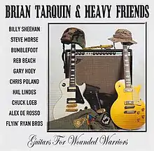 Guitars for Wounded Warriors is the sixth solo studio album by guitarist Brian Tarquin, released in August 2014 by Cleopatra Records. In 2016, it received a Best Compilation Album nomination by the Independent Music Awards. All tracks were recorded at Tarquin's Jungle Room Studios in New Paltz (village), New York. Being moved by the lack of support for returning veterans through his life Tarquin decided to compose a heavy instrumental rock album as a way to show his appreciation to all veterans. So once again he enlisted top notch players to guest with him on the album, Billy Sheehan on Black Hawk, Ron "Bumblefoot" Thal and Reb Beach on Taliban Terror, Steve Morse on Freedom, Chris Poland on Charlie Surfs and Hunting, Chuck Loeb on Escape Kabul, Hal Lindes on Sand & Blood, Gary Hoey on 5 Klicks To Hell and Baghdad, Alex De Rosso Dokken on Broken Arrow, and The Flyin' Ryan Brothers on Surgical Strike. The entire album was engineered, produced and composed by Tarquin especially for each one of the guest guitarists. Partial proceeds are donated to the Fisher House Foundation from sales.