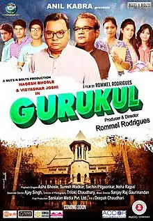 Gurukul is a 2015 Indian Marathi-language film, written and directed by Rommel Rodrigues in a directorial debut. It stars Nagesh Bhosle and Vidyadhar Joshi as the two main protagonists supported by a slew of artists like Asit Redij, Swapnil Joshi, Pradeep Kuwar, Prashant Mohite, Neha Khan, Reenna Liman, Sonali Shewale and others. The story focuses on a quest of former students to restore the glory of their institute from where they got their higher education Gurukul and release it from the clutches from the hands of greed politician who had usurped it by fraudulent means.[1]