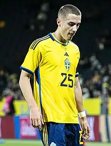 Lagerbielke made his debut for Sweden's national team on 12 January 2023 in a friendly match against Iceland.[5] On 12 October 2023, he scored his first international goal in a 3–1 victory over Moldova.[6]