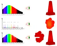 2. A low-density gas excited to emit light will do so at specific wavelengths, and this produces an emission spectrum.