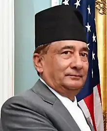Gyanendra Bahadur Karki (Nepali:ज्ञानेन्द्र बहादुर कार्की) is a Nepali politician from Nepali Congress. He is the former Minister for Information and Communications of Nepal. He was Finance Minister under Deuba cabinet, 2017.[3] He has been elected as a House of Representative from constituency 4 of the Sunsari district in 2017 Nepalese legislative election.[4][5]