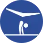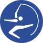 ![]() Pictograms for artistic gymnastics (left), rhythmic gymnastics (center), and trampolining (right) | |