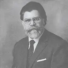 After finishing his high-school education, Herrera moved to Santiago, and in 1948 joined the Universidad de Chile.[3] He graduated in 1953 as a history, geography and social sciences teacher. Apart from his regular and compulsory courses, he studied Latin, Greek, German and Sanskrit,[13] and became fluent in English, French and Italian.[13] He was also interested in Chinese, Arabic and Russian, but he did not reach fluency in them.[13] His philology studies were decisive in his intellectual training. In his classes, according to his student and close friend José Marín,[14] the etymology of words was key in his narration of history.[13] During his undergraduate period, Herrera was influenced by teachers like Eugenio Pereira, Mario Góngora,[lower-alpha 2] Juan Gómez Millas and Fotios Malleros.[13]