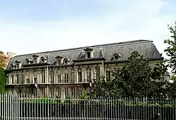 From 1802 until 1824, the building, in its commanding public situation, was rented to house the mairie of the arrondissement. From 1824 to 1859, it housed the boarders of the Lycée Charlemagne. After 1859, it became the property of the Pharmacie centrale de France and underwent some transformations: the garden was overbuilt with an assortment of service buildings, and the boiseries of the salons formed backgrounds to a variety of offices and storerooms. A history of the hôtel was issued, however, in 1903.[5]