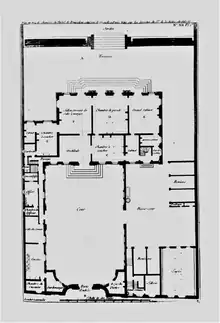 Pierre-Alexis Delamair was very much in demand at the time. It was the same time when he was involved in two other major building projects in Paris: the remodeling of the Hôtel de Clisson, lately known as the Hôtel de Guise, for François de Rohan, Prince de Soubise, which consequently became the Hôtel de Soubise and the construction of the Hôtel de Rohan for Armand Gaston Maximilien, Prince de Rohan.[6][5]