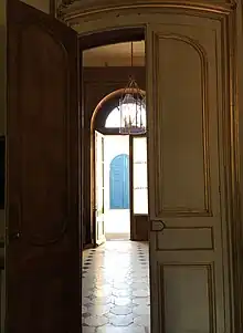 It was on 5 December 1767, that Pierre Victor, Baron de Besenval de Brunstatt, bought the Hôtel Chanac de Pompadour at auction from the many heirs of Louis-Guy de Guérapin, Baron de Vauréal et Comte de Belleval, for 170,100 livres, of which 6,000 livres for the furniture, moving there from the nearby Rue de Bourgogne. The baron, who mainly grew up in France and who was very close to King Louis XVI and especially Queen Marie Antoinette, was a descendant of one of the richest and most powerful patrician families of Solothurn. Among other holdings, the family called the Palais Besenval and the Schloss Waldegg their own; the latter was also the birthplace of Pierre Victor de Besenval on 14 October 1721.[15][16][17][18]
