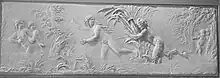 - ↑ Collections Louvre: Bas-relief à décor "Pan poursuivant Syrinx sous le regard de l'Amour" en pierre de Tonnerre par Claude Michel dit Clodion, lieu de provenance: Hôtel de Besenval, élément du décor de la salle de bains, Département des Sculptures du Moyen Age, de la Renaissance et des temps modernes, salle 223, numéro d'inventaire RF 4200, date d’acquisition (dation) 15 octobre 1987