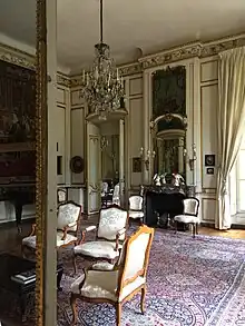 Thanks to his contacts with his friends at the Académie royale de peinture et de sculpture, of which he was named an Amateur-Honoraire in February 1784, the baron surrounded himself with quality French art works, signed by Le Nain, Charles-André van Loo, Pierre Mignard, Jean-Baptiste Greuze, Antoine Watteau, Jean-Marc Nattier and Henri-Pierre Danloux just to name a few. The baron also owned a version of La Gimblette (girl playing with a dog) by Jean-Honoré Fragonard. This painting hung in the adjoining room of his bedroom, now called the Salon de l'alcôve or Le Boudoir (it was said that the baron owned the first version).