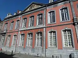 The triangular pediment dated 1765 represents an allegory of the functions of private councilor of the prince-bishop.