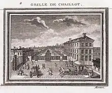 The property was first purchased by Louis-Phélypeaux de La Vrillière, Comte de Saint-Florentin, later the Duc de La Vrillière, for his mistress, the Marquise de Langeac. Construction on the home began in 1768 and proceeded slowly, parly due to an interruption. In 1777, the Comte D'Artois obtained the property but in 1778 the Comte de Langeac (son of the Marquise) regained the property and work again started to finally complete the building.[1] The two-story house had a neo-classical facade and an asymmetrical interior plan with two parallel sets of rooms.[2]