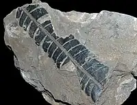 A horseshoe crab, member of the Limulidae inside Xiphosura. This fragment has been considered to be a Limulus or Mesolimulus prosomal shield, but due to the limited and fragmentary nature some authors referred to it as ?Chelicerata incertae sedis.[14]