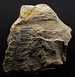 The Höör Sandstone is a geologic formation in Skåne County, southern Sweden. It is Early Jurassic (Hettangian-Pliensbachian) in age.[3] This unit outcrops in central Skane on a few isolated exposures, being traditionally subdivided into the lower “millstone” (“kvarnstenen”) and the upper “buildingstone”.[4] The lowermost layers where also claimed to host Rhaetian strata, however latter works suggested that the layers devolved as red beds, were part of the new Hörby Formation, thus delimitating the Höör sandstone to the lower Jurassic.[5][6] It has been assumed to be limited to Hettangian-Sinemurian layers, yet recent palynological analysis suggest the uppermost section is of Pliensbachian age, underlying and maybe interacting with the younger volcanic deposits.[1] The Höör sandstone represents a mostly fluvial unit with a rich collection of fossil plants, yet also includes brackish bivalves in some layers, pointing to marine ingressions locally.[7]
