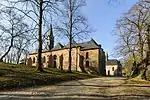 Franciscans founded a monastery (the oldest in the Eichsfeld area), also named Hülfensberg, on top of the mountain;[6] on 16 April 1860, two priests and two lay brothers dedicated the monastery—originally, these were to found a new sanctuary at Klüschen Hagis, with the Hülfensberg being nothing but a provisional church.[7]