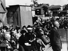 In 1938, the Australian Commonwealth Naval Board (ACNB) identified the need for a general purpose 'local defence vessel' capable of both anti-submarine and mine-warfare duties, while easy to construct and operate.[2][3] The vessel was initially envisaged as having a displacement of approximately 500 tons, a speed of at least 10 knots (19 km/h; 12 mph), and a range of 2,000 nautical miles (3,700 km; 2,300 mi)[4] The opportunity to build a prototype in the place of a cancelled Bar-class boom defence vessel saw the proposed design increased to a 680-ton vessel, with a 15.5 knots (28.7 km/h; 17.8 mph) top speed, and a range of 2,850 nautical miles (5,280 km; 3,280 mi), armed with a 4-inch gun, equipped with asdic, and able to fitted with either depth charges or minesweeping equipment depending on the planned operations: although closer in size to a sloop than a local defence vessel, the resulting increased capabilities were accepted due to advantages over British-designed mine warfare and anti-submarine vessels.[2][5] Construction of the prototype HMAS Kangaroo did not go ahead, but the plans were retained.[6] The need for locally built 'all-rounder' vessels at the start of World War II saw the "Australian Minesweepers" (designated as such to hide their anti-submarine capability, but popularly referred to as "corvettes") approved in September 1939, with 60 constructed during the course of the war: 36 (including Townsville) ordered by the RAN, 20 ordered by the British Admiralty but manned and commissioned as RAN vessels, and 4 for the Royal Indian Navy.[2][7][8][9][1]