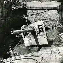On 17 September 1941, the destroyer was on patrol and drove off a Focke-Wulf Fw 200 Condor maritime patrol aircraft which was harassing a convoy.[10] On 27 September, Göteborg was at the centre of the Hårsfjärden disaster. The destroyer was docked at Hårsfjärden when the torpedoes exploded, followed by a similar explosion aboard the destroyer Klas Horn which was nearby. Göteborg sank in the harbour. Burning oil spilt onto the water, and thirty three lives were lost, although the loss would have been worse had the majority of the crew not been on shore leave at the time. Nonetheless, it was the worst loss of life the country experienced in its territorial waters during the conflict.[11]