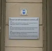 As a starting point of the first railway line towards Mecklenburg-Schwerin Hagenow Land station was equipped with the standard equipment for the maintenance and repair of railway rollingstock. These still exists, but in a highly dilapidated condition. There was a depot (Bahnbetriebswerk), which was located on the south side of the line towards Ludwigslust. It had among other things, a roundhouse with ten stalls and a turntable. Another very similar building nearby suggests a second roundhouse, but all traces of a turntable and sidings that probably once existed have disappeared. There are other sidings and a shed on the property. A former water tower, which is about 30 m-high, is located near the station building. This eleven-storey high, Brick Expressionist construction was built in 1926.[8] It is in a highly dilapidated condition and is a heritage-listed building.[9]