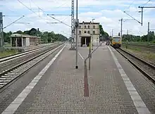 The mainline tracks of the Berlin–Hamburg line no longer have platforms. Regional trains towards Ludwigslust have to cross the track from Berlin so that they can stop on platform 1.