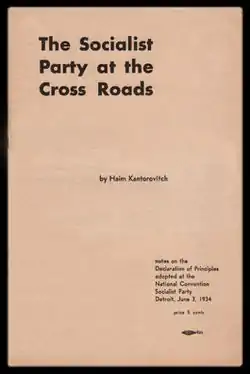 Kantorovitch was the author of several political pamphlets advocating a move of the SPA towards a perspective of revolutionary socialism. Despite this perspective, Kantorovitch was consistently critical of the Communist Party (CPUSA), particularly hostile to the party's equation of social democrats with fascists and their activity building dual trade unions up through 1934 under the aegis of the Trade Union Unity League.