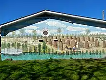A mural in Haleburg depicts the town's agricultural history and its ties to the nearby Chattahoochee River.