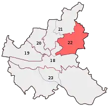 Hamburg-Wandsbek is an electoral constituency (German: Wahlkreis) represented in the Bundestag. It elects one member via first-past-the-post voting. Under the current constituency numbering system, it is designated as constituency 22. It is located in northeastern Hamburg, comprising the southern part of the Wandsbek borough.[1]