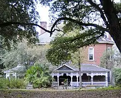 Hamer Hall is a historic home located near Hamer, Dillon County, South Carolina. It was built about 1890, and is a two-story, brick dwelling in the Late Victorian style. The house contains 14 rooms and has three large porches. It has a corner turret and the roof is a combination of hipped and gable modes. The front facade features a one-story piazza with very elaborate ornamentation fashioned with chisel, gouge and lathe. Also on the property are three barns, a windmill, and a water tank.[2][3]
