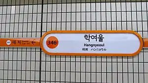2. 1 2 "Hangnyeoul". Seoul Metro. Archived from the original on 2017-02-17. Retrieved 2017-02-17.