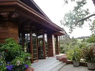 The Hanna–Honeycomb House, also known as simply the Hanna House, located on the Stanford University campus in Stanford, California, United States, was Frank Lloyd Wright's first work in the Bay Area[3] and his first work with non-rectangular structures.[4] The house was chosen by the American Institute of Architects as one of seventeen buildings by the architect to be retained as an example of his contribution to American culture. It was recognized as a National Historic Landmark on June 29, 1989.