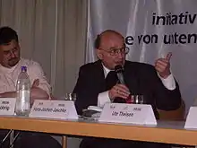 Jaschke belonged to the Freitagsgesellschaft, a think tank of politicians, entrepreneurs, scientists, artists and theologians founded in 1985 by Helmut Schmidt.[8] He was known nationwide by his presence in the media in many talk shows,[2][9] not avoiding difficult questions such as celibacy, homosexual priests and pomposity of dignitaries.[10][2]