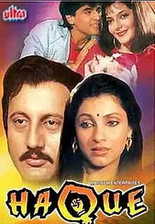 Haque is a 1991 Indian Hindi-language political film directed by Harish Bhosle and produced by Mahesh Bhatt. It stars Dimple Kapadia, Aasif Sheikh, Sonu Walia, Anupam Kher in pivotal roles, with Paresh Rawal, Girija Shankar in supporting roles.[1][2] India Today criticised the film.[3]