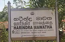 Harindra Mawatha in Chilaw, Sri Lanka – the road was named after Harindra Corea M.P.