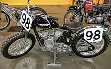 In 1956, every Class C race was won by a Harley-Davidson KR.[8] From 1955 through 1969, 12 of the 15 AMA Daytona 200 national championships were won by KRs.[8] A 1957 KR appeared in the 1999 Guggenheim Museum's The Art of the Motorcycle exhibition in New York and a 1963 KR was in the Las Vegas show.[3] The AMA Motorcycle Hall of Fame Classic Bikes collection includes two Harley-Davidson KRs: a 1959 KR that is the last motorcycle raced by three-time AMA Grand National Champion Joe Leonard, and Mert Lawwill's 1969 KR750.[11][12]