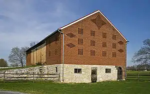 Harris Farm is a historic home and farm complex located at Walkersville, Frederick County, Maryland, United States. The main house was built in 1855, and is a three-story center plan house in predominantly late Greek Revival syle, with some Italianate elements. The agricultural complex consists of a bank barn with an attached granary; a second frame barn that shares an animal yard with the bank barn; a row of frame outbuildings including a converted garage, a workshop, and a chicken house. There is also a drive-through double corn crib; and a frame pig pen from 1914. The 20th-century buildings consist of a frame poultry house, a dairy barn with milk house and two silos, and an octagonal chicken coop. A lime kiln is located on the edge of the property.[2] The property is preserved as part of the Walkersville Heritage Farm Park.