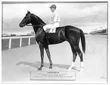 Tartarean was a bay colt by Stanhope II, a grandson of St. Simon, from Tarletan by Uhlan. He was bred by the Pontiac Stud owned by Lily A. Livingston, owned by Charles Millar, trained by Jonn Nixon, and ridden by Harry Watts. Charles Millar came to own Tartarean and stablemate Fair Montague, who finished second, because of a rule at the time which dictated that horse owners in Ontario not only had to be residents but had to be British subjects. Mrs. Livingston, the breeder of both runners, was an American citizen. She did receive $500 from the OJC as the breeder of the winner though.[5]