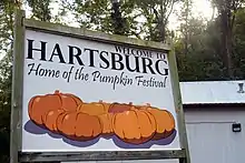 The Hartsburg Pumpkin Festival is held each year on the second Saturday and Sunday of October, which includes games, foods, and crafts. Each year during the festival tens of thousands come to eat and shop at the numerous venues and food booths.