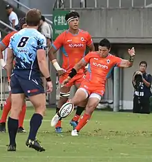 Harumichi Tatekawa (立川 理道, Tatekawa Harumichi, born 2 December 1989) is a Japanese rugby union player who can play either as a fly-half or centre. He plays for the Kubota Spears in Japan and the Brumbies in the international Super Rugby competition.[1][2]