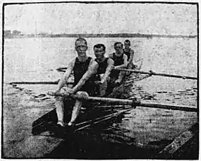 However it was as a rower that Pulford gained international acclaim.[1] He was a member of the Britannia Boating Club, winning national and U.S. championships.[46] Due to his hockey career, which coincided with the rise of professionalism in that sport, he had to be re-instated by the Canadian Association of Amateur Oarsmen in 1909, as had played against professionals and was thus considered a professional by the rules of the time.[lower-alpha 4][1] He was a member of the Ottawa Rowing Club, and in 1910 their eight defeated every one of its opponents, earning the Canadian and North American championships.[48] In 1911 his crew reached the semifinals of the Henley Royal Regatta.[46] Pulford's crew lost to one from Magdalen College, Oxford University; Pulford reportedly said his participation in the regatta was his greatest sporting achievement.[1] He time as a rower with the Club ended in 1915.[49] Later on he served as president of the Club, and resigned in 1936.[50]