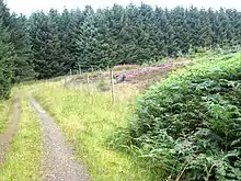 The next major acquisition was in 1950, when the Cragside estate of William Watson-Armstrong, 2nd Baron Armstrong, leased 525 acres (212 ha) to the commission, followed in 1951 by another 867 acres (351 ha), to form the Simonside section of the forest. This section is enclosed by the Simonside Hills, Simonside and Tosson Hill constraining the forest to a narrow neck-section, with additional forest to the north of Simonside.[3]