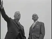 Manteuffel (right) discussing the Battle of St. Vith with US Army General Bruce C. Clarke in 1965.