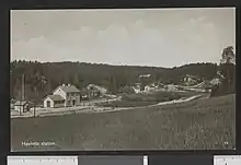 The new route allowed the railway to establish a station at Hauketo, which opened on 15 February 1925. It initially only had a simple platform in each direction. A station building with a waiting room, post office and cargo ramp.[3] Hauketo received some housing in the 1920s, but first during the late 1940s was there any large-scale construction in the former rural area. There were some condominiums, but the neighborhood consisted for the most part of single dwellings.[4]