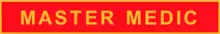 - Master Medic is the expert level of the Medic Program. represent the leadership of the Medic Program, and are similar to Expert Rangers. They typically hold instructor ratings in multiple medical fields, and have completed multiple on the job and field assignments as a Senior Medic. Candidates must have been qualified as a Senior Medic for five years prior to becoming a Master Medic. In addition to the Red Scarf, Master Medics are awarded a Red Belt. Only 26 people have become Master Medics since 1972.[13]