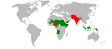 By 2010, there were three malaria regions in Indonesia: Nusa Tenggara Barat with 20 cases per 1,000 citizens, Nusa Tenggara Timur with 20–50, and Maluku and Papua with more than 50 cases per thousand. The medium endemicity in Sumatra, Kalimantan and Sulawesi, whereas low endemicity is in Java and Bali which almost 100 percent of malaria cases have been confirmed clear.[33] At 1990 malaria average incidence was 4.96 per 1,000 and declined to 1.96 per 1000 at 2010. The government is targeting to rid the country of malaria by 2030 and elimination means to achieve less than 1 incidence per 1,000 people.[34]