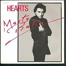 "Hearts" is a song written by Jesse Barish and performed by Marty Balin in 1981, included on his debut solo album Balin.[1] It was Balin's third single in nineteen years (after his distant and unsuccessful songs "Nobody but You" and "I Specialize in Love"/"You Are the One" of 1962 [2]) and the biggest hit of his solo career.