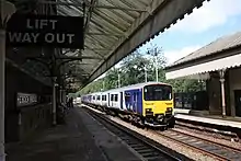 Westbound there are three trains per hour to Manchester Victoria (hourly evenings and Sundays), and an hourly service to Blackpool North via Burnley Manchester Road and Blackburn (direct weekday services there were temporarily stopped in November 2017 but have resumed from the May 2019 timetable change). One of the Manchester trains is a limited-stop service, calling at Todmorden and Rochdale only, whilst the service via Dewsbury continues to Wigan Wallgate.[11] The other Manchester service now extends through to Warrington Bank Quay and Chester.
