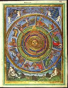 The Heidelberger Schicksalsbuch is a parchment manuscript, completed in the 1490s in Regensburg, kept in Heidelberg University library as Cod. Pal. germ. 832. On 271 folia it treats topics of astrology and magic. A functional paper astrolabe is inserted on fol. 103 and into the back cover.