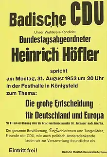 ![]() Announcement poster of Heinrich Höfler for the federal elections 1953 | |