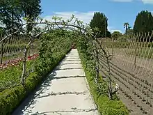 The northern part of the gardens, which includes the main ornamental and vegetable gardens, are slightly higher than the house and slope gently down to it. The areas of the gardens to the west, south, and east of the house slope steeply down into a series of valleys that ultimately drain into the sea at Mevagissey. These areas are much wilder and include the Jungle and the Lost Valley.[3]