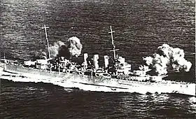 Burrell was still based at the Navy Office when World War II broke out in September 1939.[10] A reorganisation of the headquarters in May 1940 saw him promoted to commander and given the new role of Director of Operations, overseeing troop convoys and their air cover, local defence, and staffing issues.[11] Burrell's "full knowledge of Australian naval plans and resources" led to Prime Minister Robert Menzies personally nominating him to participate in staff talks with representatives of the Royal Navy and US Navy in October.[5] Soon after, he was posted as the first Australian naval attaché to Washington, D.C., in an effort to improve communications with the US in light of the threat from Japan.[12] Burrell was credited with helping to foster closer cooperation between the two navies in the Pacific region.[5] He also warned the Australian government that Britain and the US would adopt a "Germany-first" strategy in the event of war with Japan, and that the US was prepared to weaken its Pacific fleet to help secure the Atlantic.[1][13]